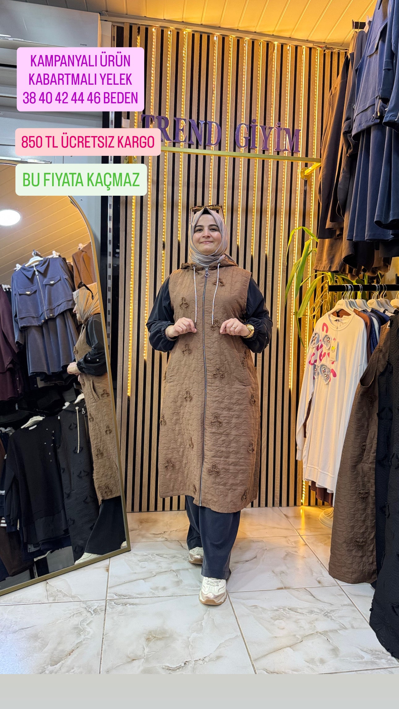 KAPITONE KABARTMALI YELEK KAHVE Y2