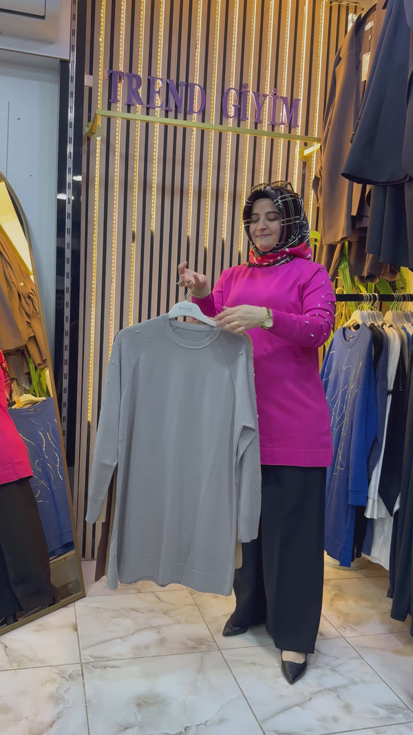 MERSERIZE KOLU TAŞLI TUNIK FUŞYA